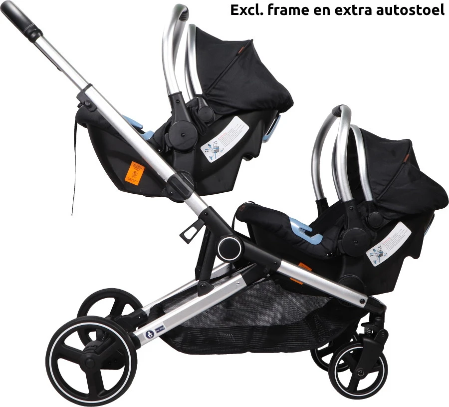 Op het frame van de Amigo duowagen (niet meegeleverd, apart verkrijgbaar) kan je รฉรฉn of twee autostoelen plaatsen. Zo kun je er ook gemakkelijk een tweeling kinderwagen van maken! De autostoel kan zowel naar binnen als naar buiten op het frame geplaatst worden en je kan daarnaast ook kiezen of je hem onder of boven wil plaatsen.ย