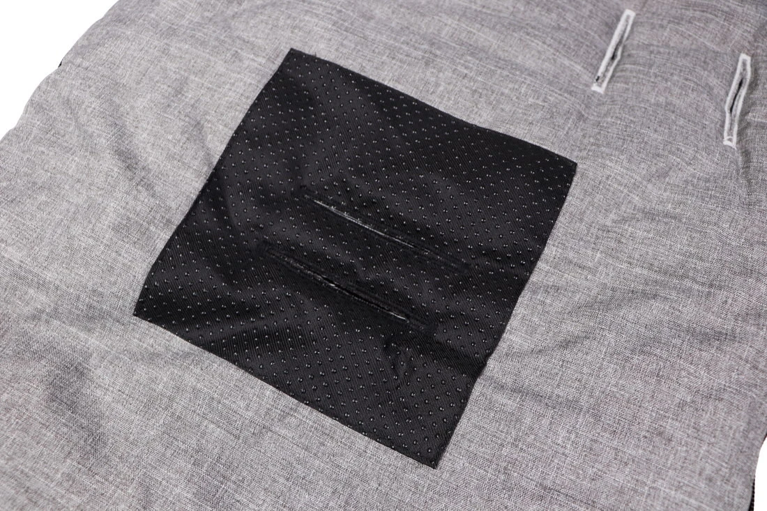 De voetenzak is wind- en waterdicht, waardoor je ook met slechter weer naar buiten kan met je kindje. Aan de achterkant heeft hij een anti-slip stuk, zodat de voetenzak niet zal wegglijden. De voetenzak is gemaakt van polyester stof een heeft de afmetingen: 85 x 40 cm (lxb).