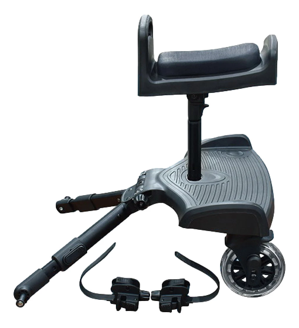 Dit buggyboard heeft een praktisch en comfortabel zitje, waar je kindje op uit kan rusten. Dit zitje is in 3 hoogtes verstelbaar en tevens afneembaar, zodat het plankje ook zonder zitting te gebruiken is. Hij heeft twee bevestigingsriemen die eenvoudig verstelbaar zijn, dit maakt het meerijdplankje universeel en geschikt voor de meeste kinderwagenframes! De fijne zwenkwieltjes zorgen ervoor dat hij vlekkenloos mee zal bewegen. Hij is geschikt voor kindjes vanaf 15 maanden tot max. 20 kg.