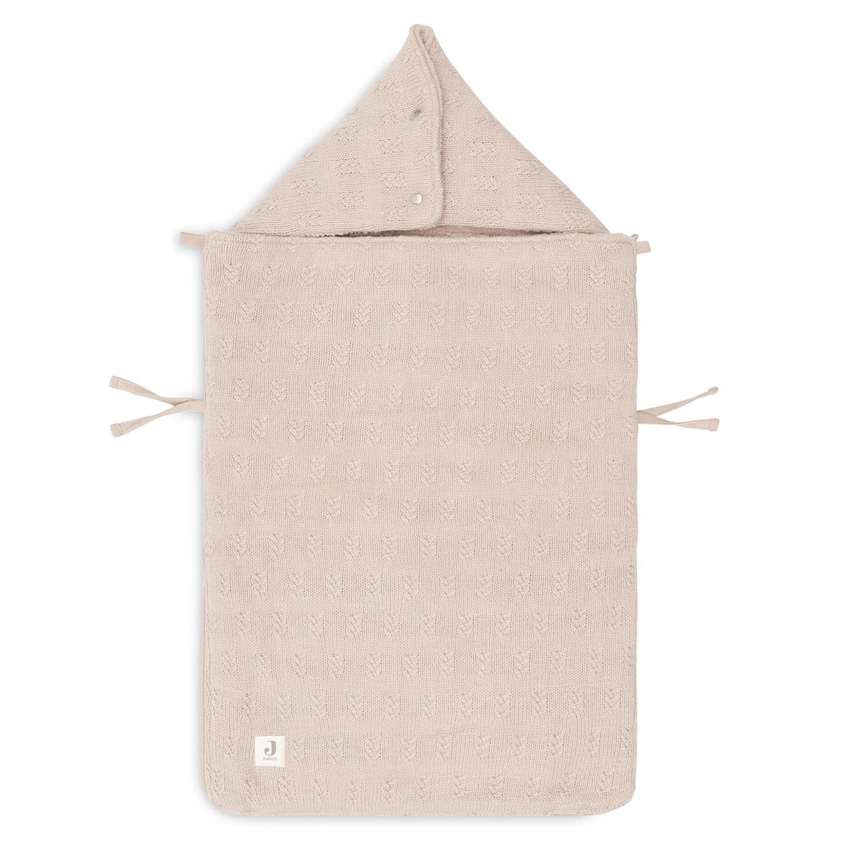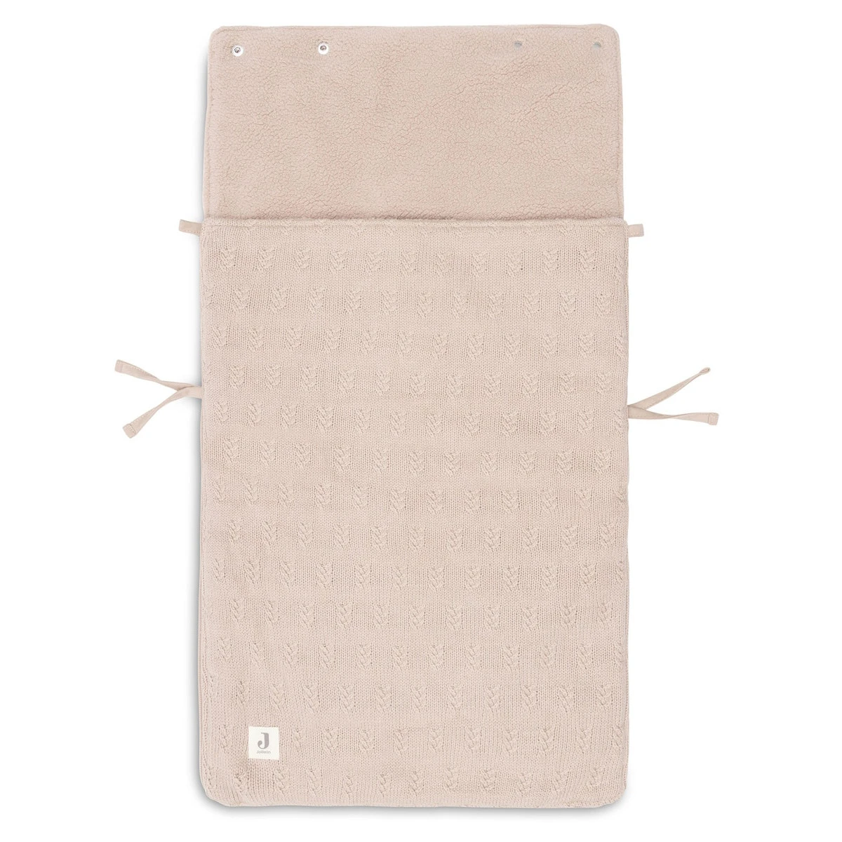 Deze comfortbag komt uit de Grain Knit collectie van Jollein en heeft een gebreid patroontje aan de buitenkant en zachte fleece aan de binnenkant. Daarnaast heeft de voetenzak een capuchon die je kan dicht maken door middel van drukknoopjes. Zo krijgt je kindje het niet koud tijdens de reis.