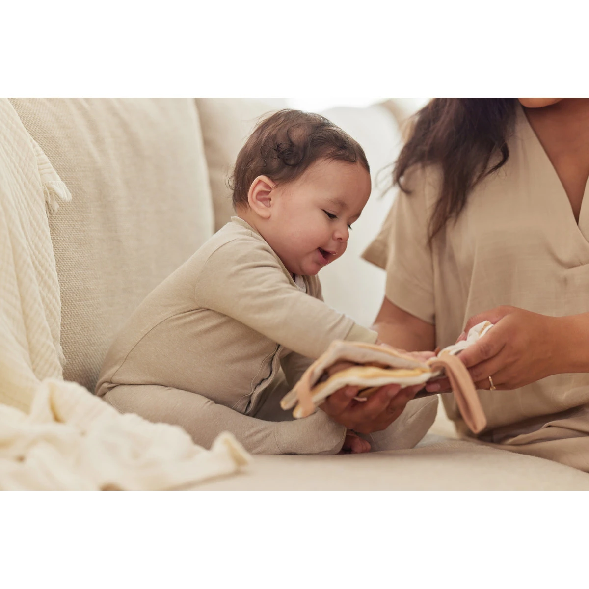 Op elke ‘pagina’ staat een lief figuurtje afgebeeld die de zintuigen van je kleintje prikkelt. Er zit ook een leuk spiegeltje in het boekje waar je kleine zichzelf in kan zien. Andere elementen in dit buggyboekje die de zintuigen van je kindje prikkelen zijn kleurrijke labeltjes en knisperende ‘pagina’s’. Met een handig lusje met klittenband bevestig je het boekje makkelijk aan een buggy, kinderwagen of autostoeltje. Zo neem je hem makkelijk overal mee naartoe.