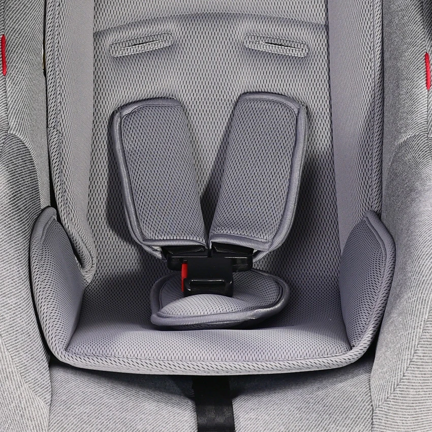 De autostoel is uitgerust met een 3-punts veiligheidsgordel, zo zit je kleintje altijd veilig in het stoeltje. Er zit een zacht kussentje in de stoel en de verstelbare veiligheidsgordel beschikt over gordelkussentjes, zo zal je kleintje altijd comfortabel zitten, zonder dat de veiligheidsgordel irriteert of snijdt. Doordat de bekleding afneembaar is kun je deze makkelijk wassen.
